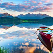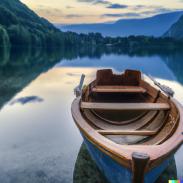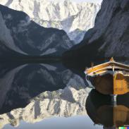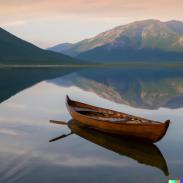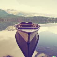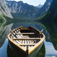 Meine Beispiele für mit künstlicher Intelligenz (KI) erstelle Bilder - Eine Ruderboot auf einem See vor Bergen